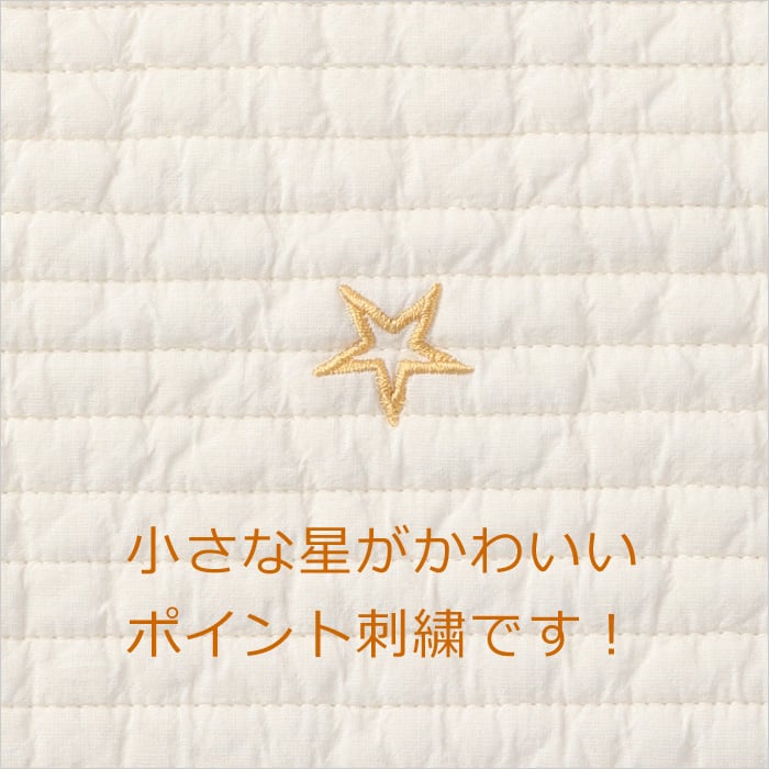 さらっと柔らかい手ざわりなうえ、抗菌中綿で衛生的!星の刺繍がポイントです。