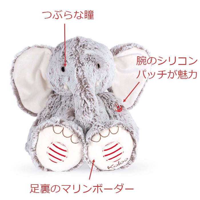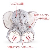 長いお鼻と大きなお耳が愛らしい、ゾウのぬいぐるみです。